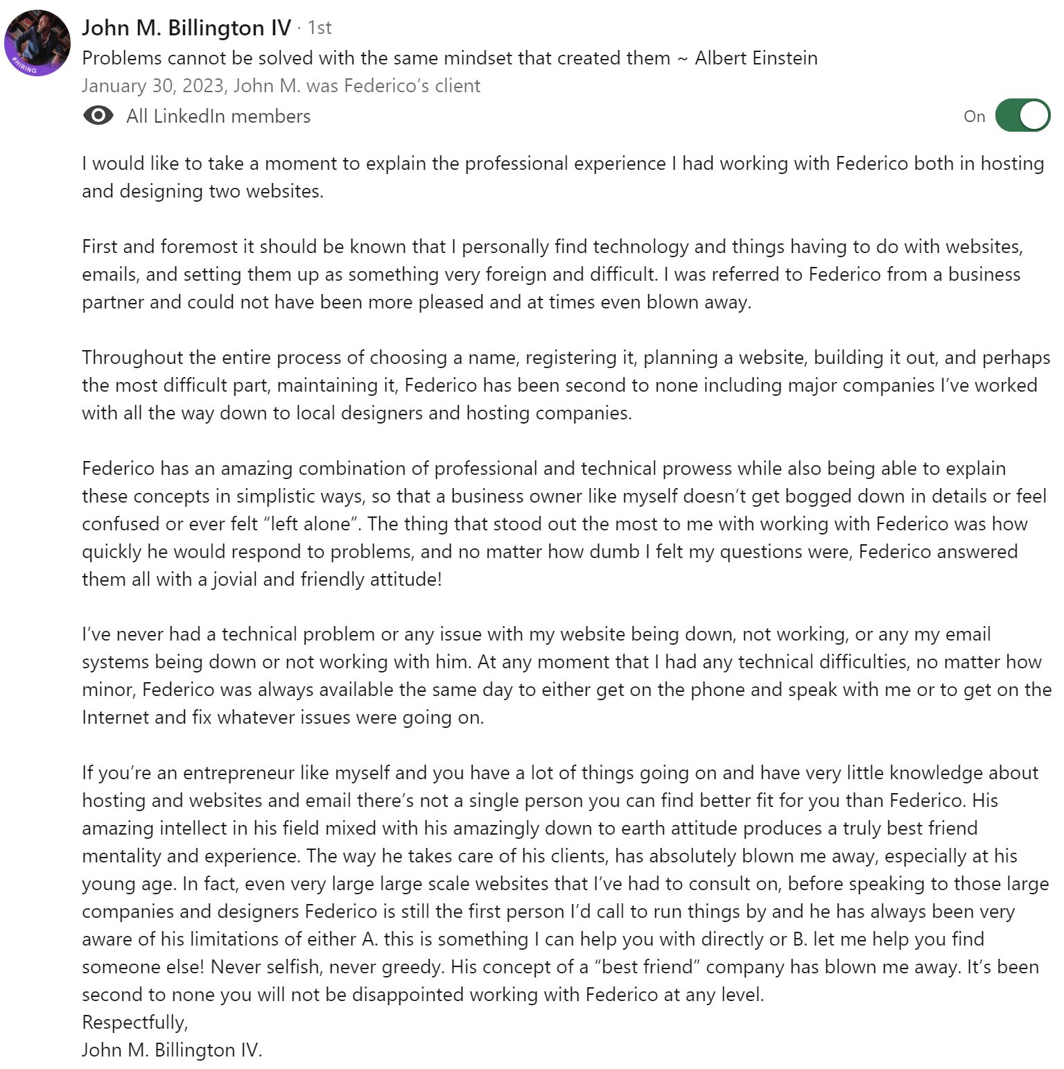 I have solved technical issues, designed logos, banners, taught clients how to use their website, developed snippets, designed databases, modified current scripts/plugins, created landing pages, ran Facebook Ads campaigns, created my own WordPress plugins and child themes, etc. And I come to the conclusion that being responsive is the most important when working with clients.