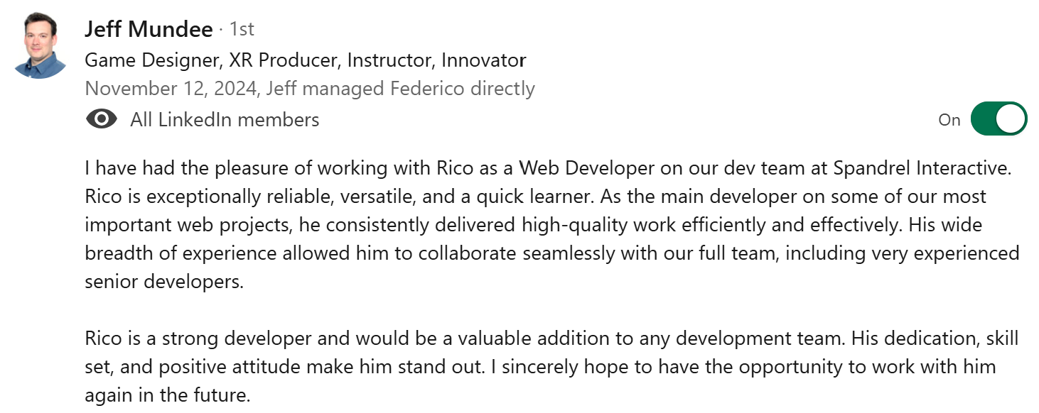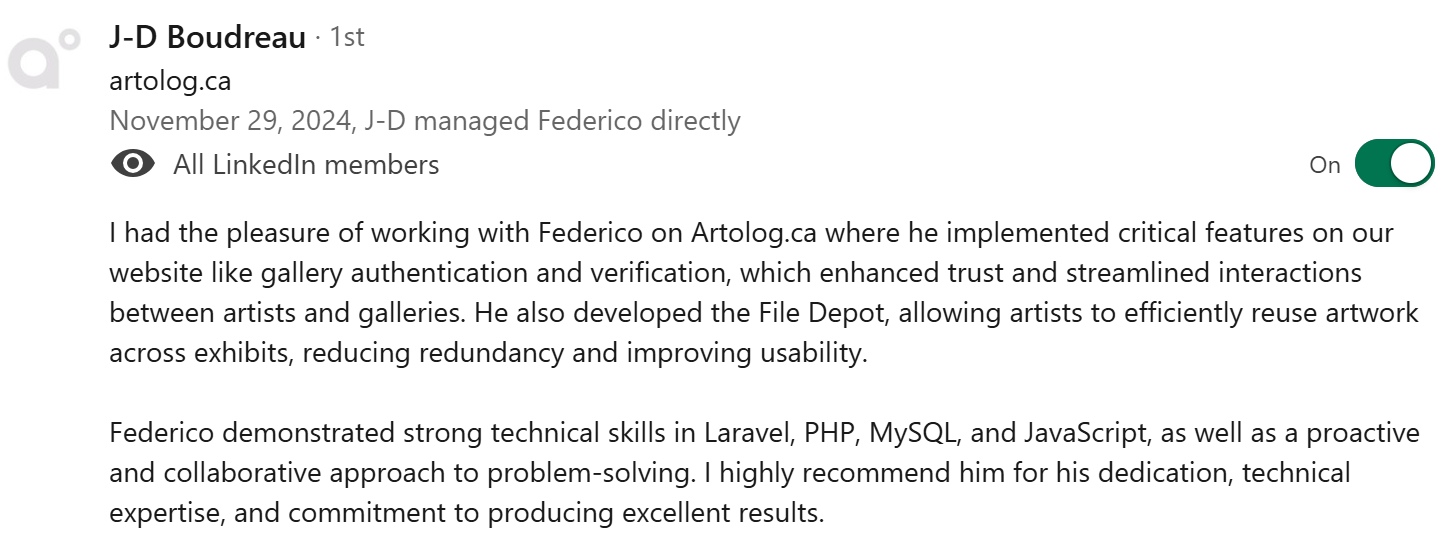 Over the last two years, I’ve honed my skills in full-stack development, focusing on technologies like advanced JavaScript, PHP, Node.js, and database design. My experience also includes C#, Java, Git, and project management, enabling me to deliver clean, maintainable and well documented code.